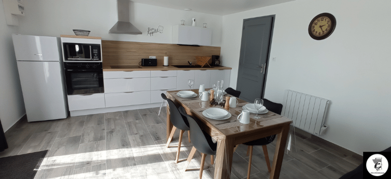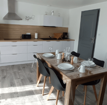 La table à manger, joliment dressée vous invite à partager des moments conviviaux .