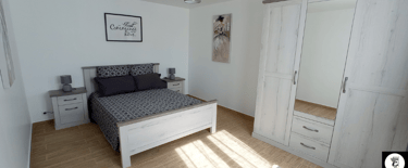 Avec son lit double, ses tons apaisants et son mobilier en bois clair, cette chambre vous promet des nuits reposantes. Une grande armoire avec penderie est à votre disposition.